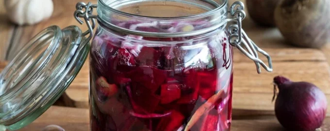 Uien ingemaakt met rode biet zijn een veelzijdige snack voor bij vlees of als toevoeging aan verschillende salades